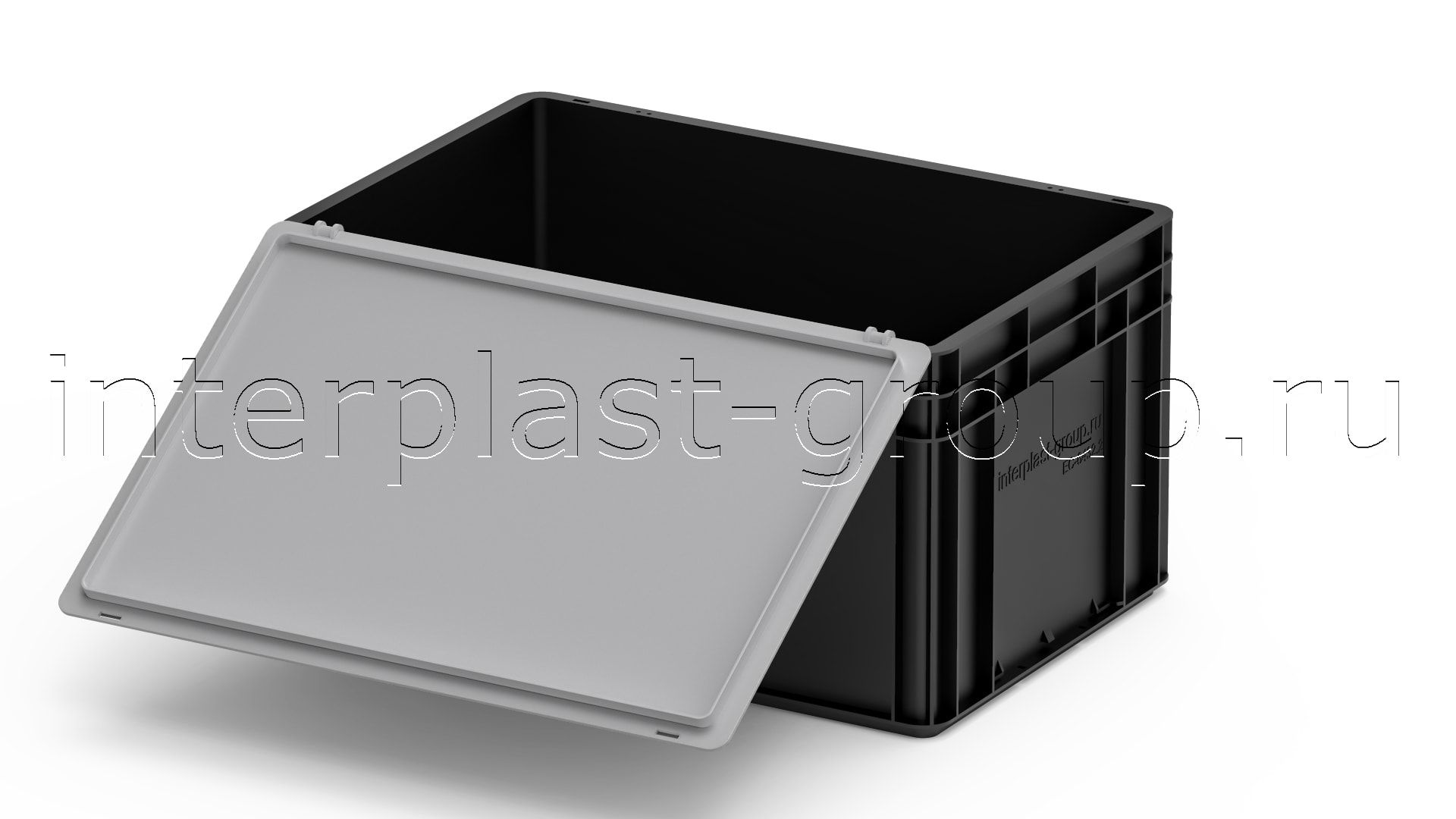 Евроконтейнер закрытые ручки/сплошное дно (черный), 600x400x320 мм