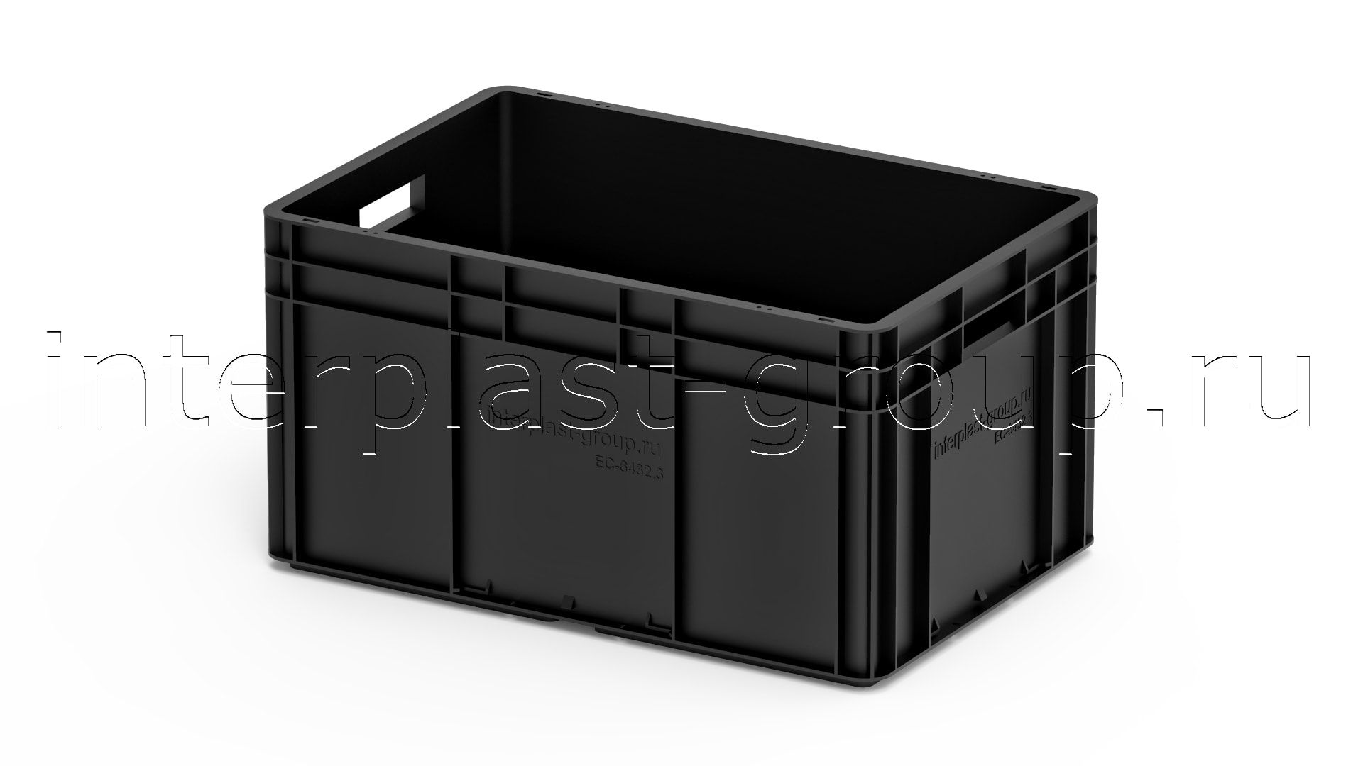 Евроконтейнер открытые ручки/усиленное дно (черный), 600x400x320 мм