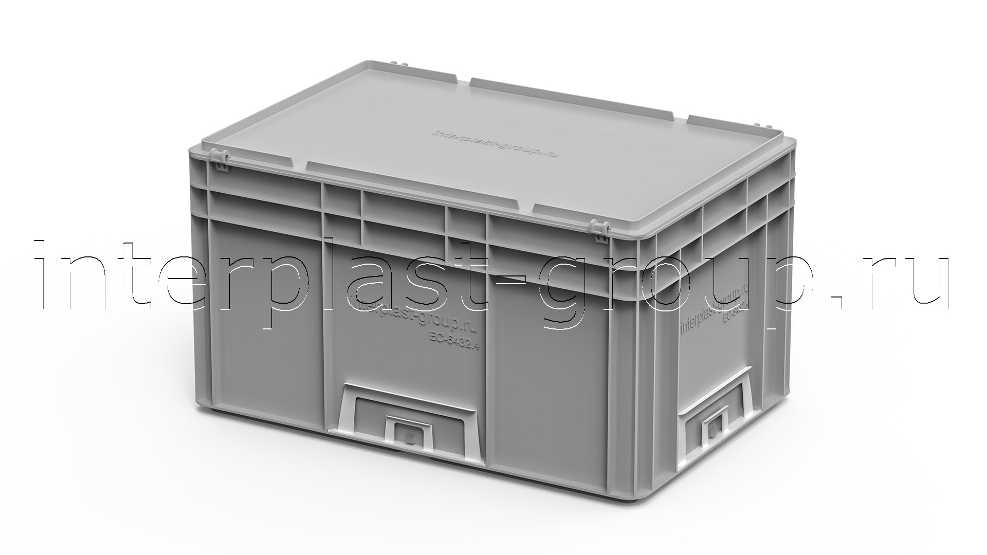 Евроконтейнер закрытые ручки/усиленное дно (серый), 600x400x320 мм