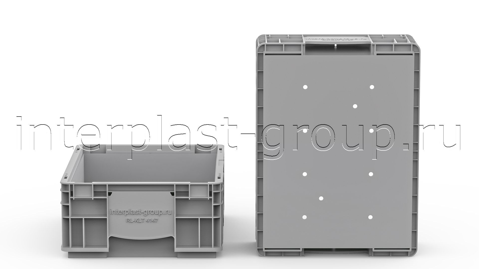 RL-KLT в сером цвете изготовлены с добавлением вторичного сырья, в связи с чем они дешевле аналогичных контейнеров в голубом цвете.