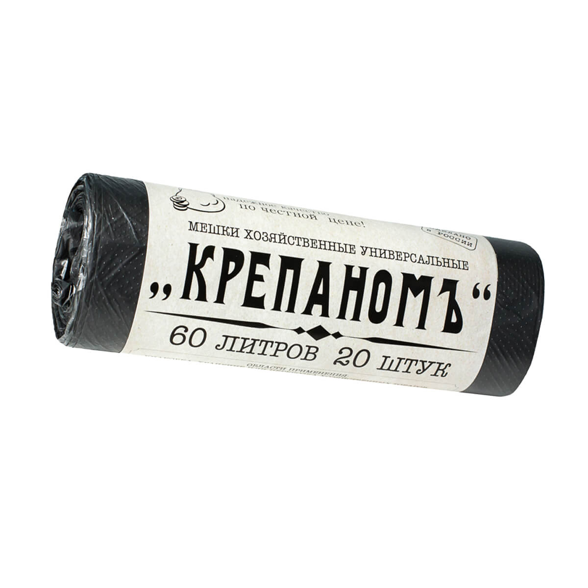 Мешки для мусора 60 л, черные, в рулоне 20 шт., ПНД, 8 мкм, 680х530 мм, Крепаномъ, 4607075710566