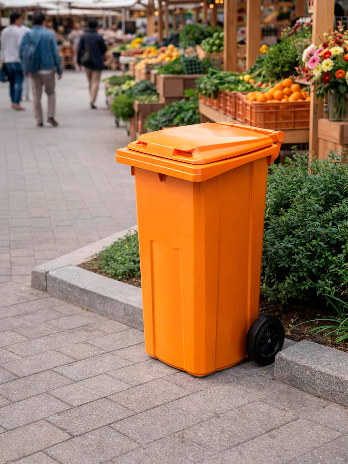 Оранжевый контейнер для мусора 120 л — это решение, созданное для объектов, где важны высокая видимость, порядок и структурированный сбор отходов. Такой мусорный контейнер уличный часто используют на производственных территориях, в коммунальных службах, на стройплощадках, парковочных зонах и в частном секторе, где требуется контрастная маркировка.