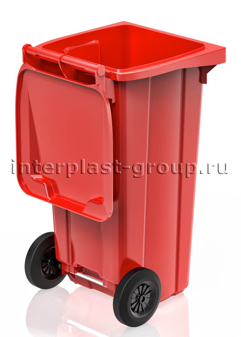 Контейнер для мусора 120 л на колёсах с крышкой, красный — маркировка специальных потоков отходов и высокая видимость
