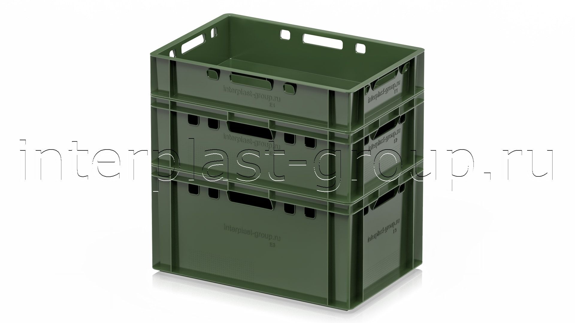 Зелёный ящик серии Е-1 востребован как ящик для хранения и контейнер для хранения в холодильных и морозильных камерах, а также как ящик для склада и удобный складской ящик при комплектации заказов. Он подходит и в роли ящика для транспортировки при внутрипроизводственных перемещениях.