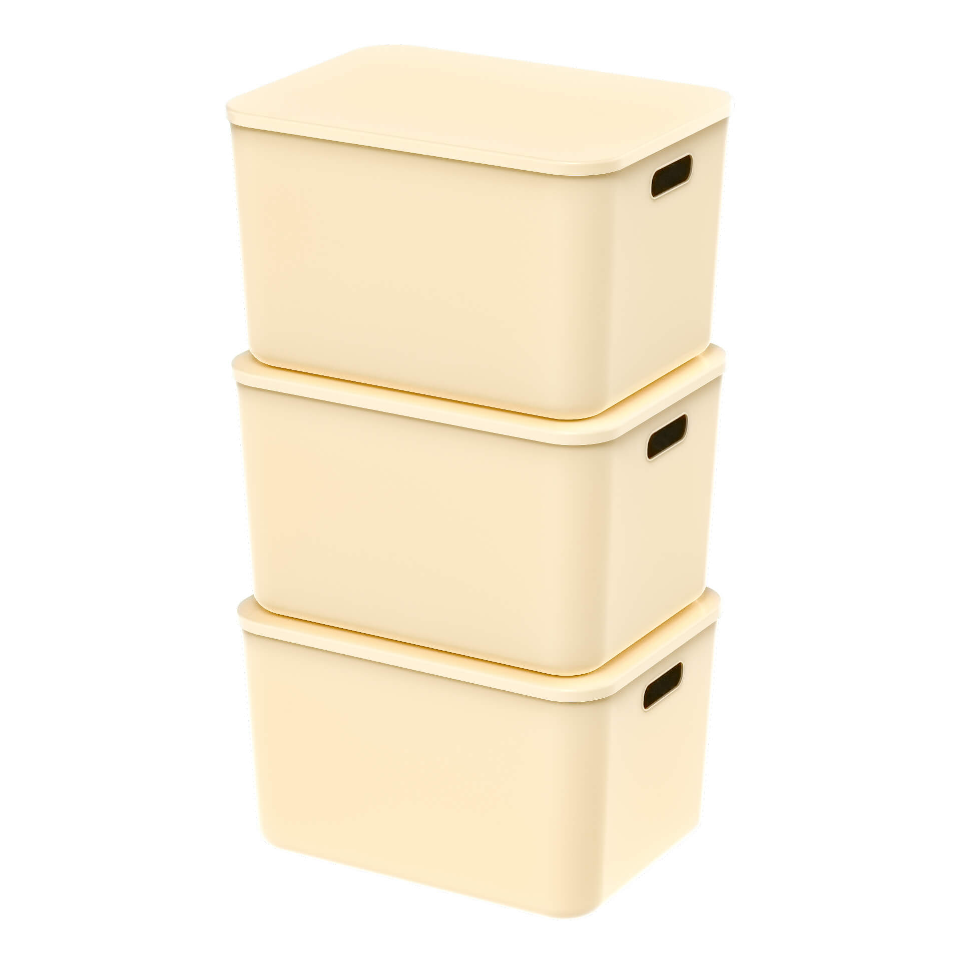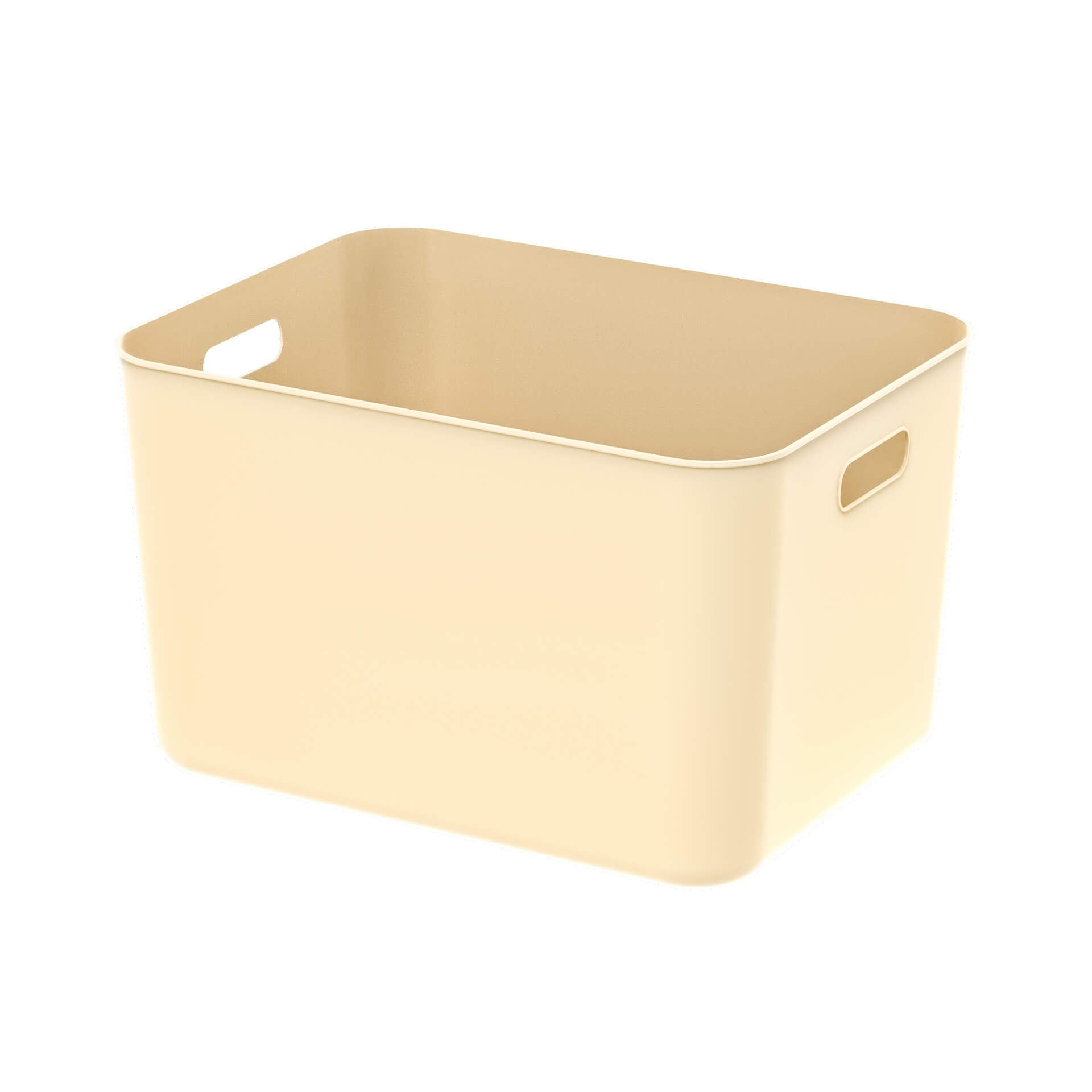 Вкладываемый пластиковый ящик 410х305х245 мм, бежевый, с открытыми ручками и крышкой – удобное и надежное решение для хранения