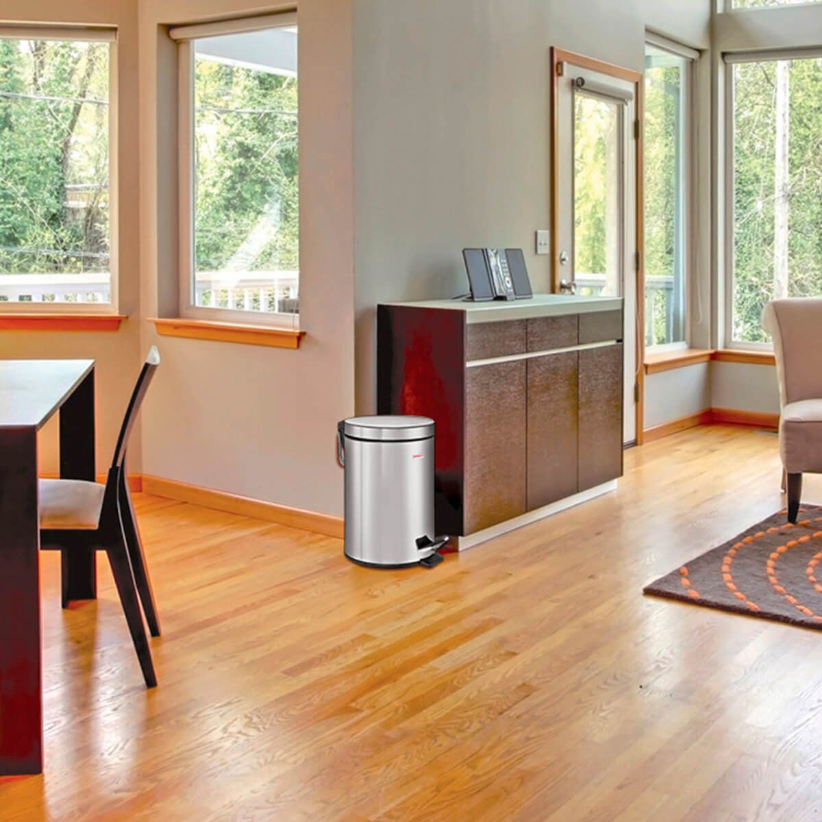 С вместимостью 12 литров, это ведро идеально подходит для помещений с умеренным потоком людей. Оснащено педалью для удобного открывания. Плотно прилегающая крышка надежно удерживает запахи внутри. Внутренний пластиковый контейнер снабжен удобной рукояткой для легкого извлечения.